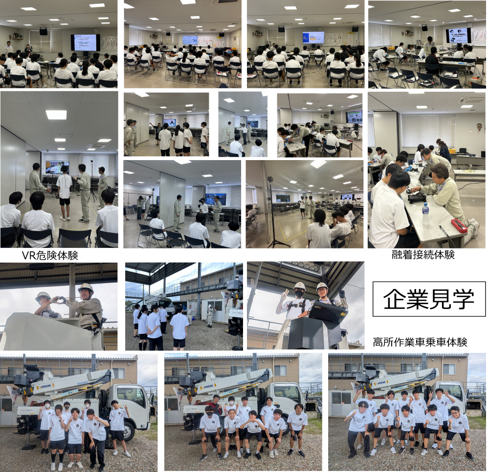 その後、春日井西高校の生徒たちは、『光ファイバ融着接続』『VR体験』『高所作業車乗車体験』の3つの体験をローテーションで行いました。融着体験では、光ファイバや工具の取扱いに苦戦をしたり、VR体験では実作業中での危険ポイントを学びました。特に、高所作業車乗車体験では“乗ってみたかった!”という声が多く体験を楽しんでいました。