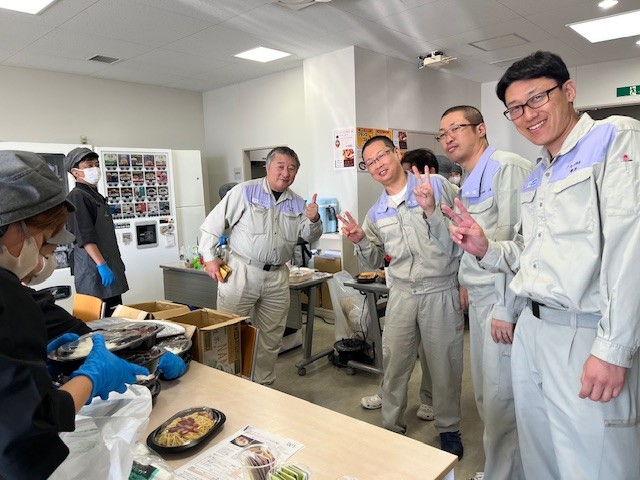 🍅さかほぎ農場出張キッチン🍅による特別メニューを囲み、部署を超えた交流が生まれました。さらにこの特別メニューは春日井ビルに従事している社員も楽しむことができ、交流の輪がさらに広がりました。